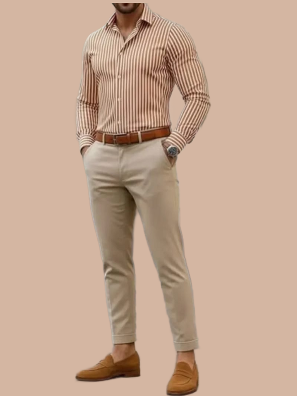 Beige Striped Shirt & Sand Trousers Men’s Premium Combo